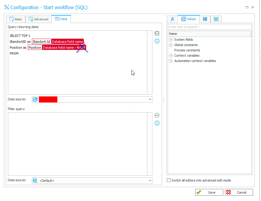 Hi, I'm going through data migration process via sharepoint lists and the protocol that I want to achieve it with is by using cyclical actions. I've created an automation that is runing subworkflow(sql) and there is a problem with mapping. Data source has exact values that I need, and I'm using them as intended but the problem is I'm getting data rows I don't want and even then those queried fields are still not applied to created instances after running the action, so that leads me to believing that something is wrong. In the end, instances created are empty and those 2 fields I only used for testing purposes are still not applied.