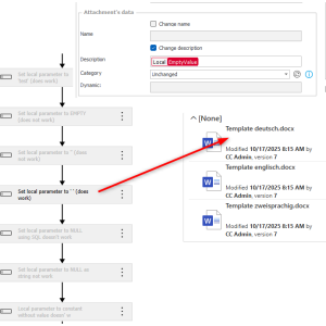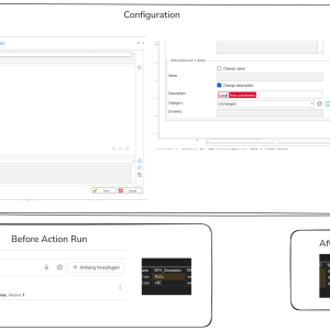I've used the "Update attachment" action, ticked the bock to change the description and tried: