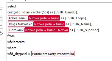 CSTR_Superior* <String> - Unikalny identyfikator przełożonego - CSTR_UserID (null jeśli użytkownik nie ma przełożonego)