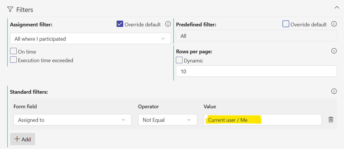 Ondrej Hello community, what value should be entered when filtering only instances where I participated and me is not assigned to? See picture attached. Thank you