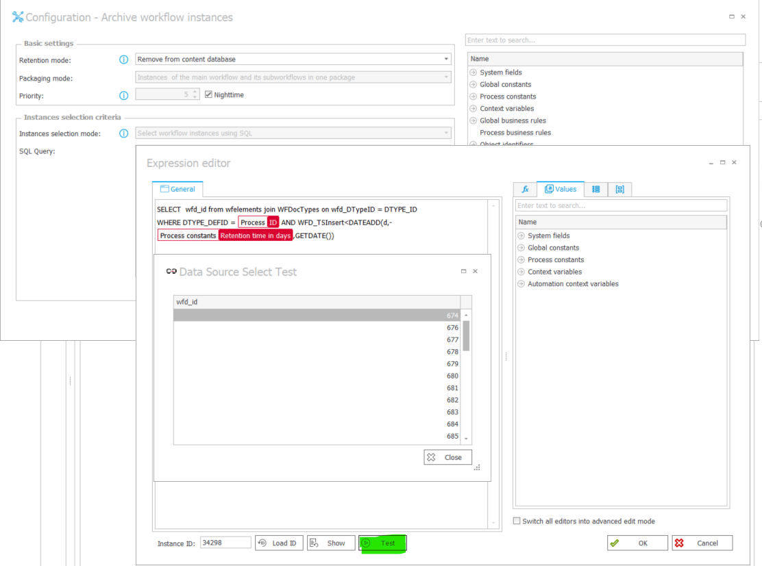 what could be wrong with my configuration - Archive workflow instances - Retention mode - Remove from content database (see picture attached)? It is not working.