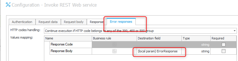 Mapping the response into form fields (e.g. writing error_msg into a field like rest_response)