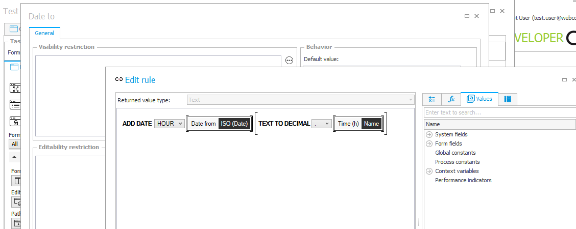I have a question about calculating a Date to field based on two other fields in WEBCON.