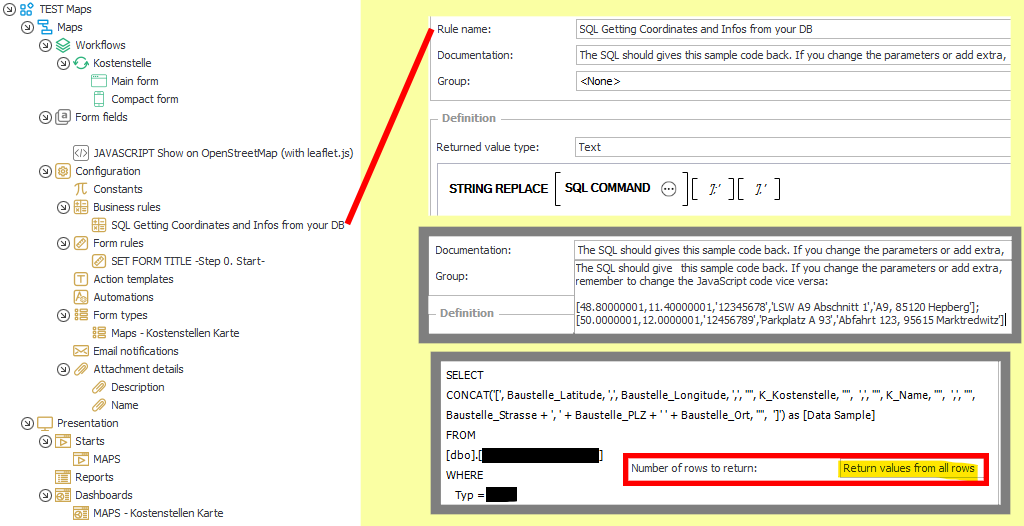 The idea behind this proof-of-concept was to expand a JavaScript-based feature we’ve been using for years - previously limited to displaying extracted latitude and longitude values of a single instance for individual quality issues. Our goal was to use a Business Rule to display any number of locations on a map, such as construction sites or similar points of interest. As part of this, we also wanted to enable the display of additional information when clicking on a location marker (in another use case, we even included images). Perhaps it can also serve as inspiration for others to take this idea further.
